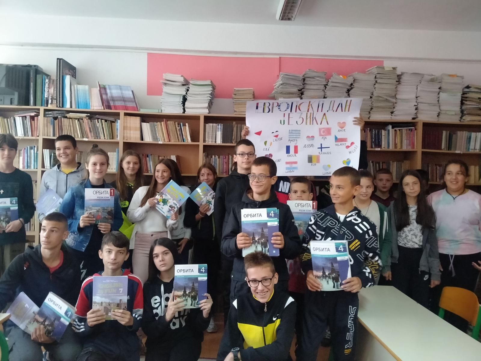Evropski dan jezika u našoj školi obilježen je u prostorijama biblioteke sa učenicima od šestog do devetog razreda. Pravljen je pano na kome su prikazane zastave evropskih jezika uz poruku „Ljubav na različitim jezicima“. Kroz prezentaciju prikazane su činjenice i zanimljivosti o jezicima, a zatim su učenici učestvovali u kvizu prepoznavanja gradova i država. Na ovaj način predočili smo prednosti učenja i poznavanja različitih jezika.